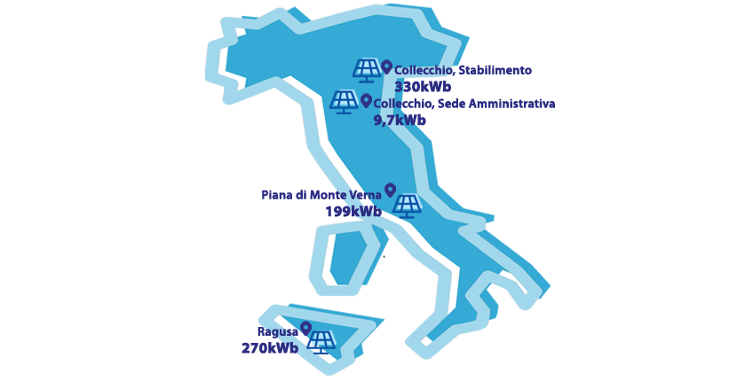 Sin dal 2009 ha iniziato a installare pannelli fotovoltaici nei suoi principali impianti produttivi: lo stabilimento di Collecchio ha pannelli fotovoltaici per un totale di 330 kWp, la sede amministrativa sempre situata a Collecchio di 9,7 kWp, mentre gli stabilimenti produttivi di Piana di Monte Verna (Caserta) e di Ragusa rispettivamente di 199 e da 270 kWp.