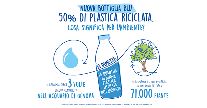 Grazie alle nuove bottiglie Blu con 50% di PET riciclato Parmalat: